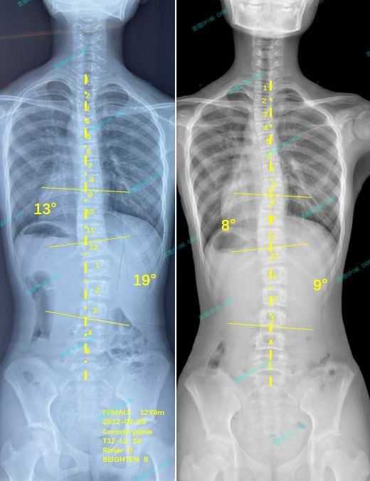 案例主人:瑶瑶 发现侧弯年龄:12岁 侧弯情况:Cobb角度19度