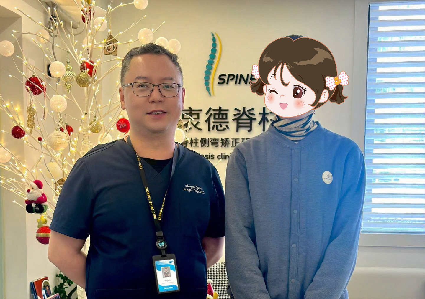 So my mother helped me find it for a long time, and finally chose Zhongde Spine for consultation. Dr. Yang is very professional and meticulous, and we all think it makes sense, so we decided to sign up for a course of treatment and try it. At first, I came to train twice a week, but then as my study became busier, my mother helped me switch to training once a week. Since I am now in high school, it will be difficult to correct my scoliosis, so every time I train very seriously, and the rehabilitation therapists will encourage me and praise me for my persistence.