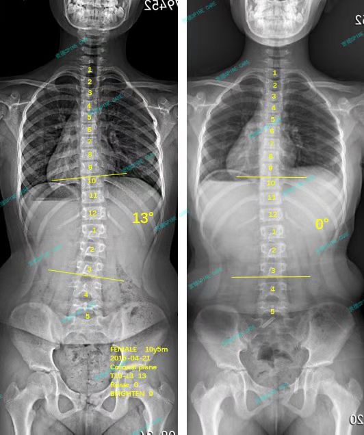 案例主人:桐桐 发现侧弯年龄:10岁 侧弯情况:Cobb角度13度