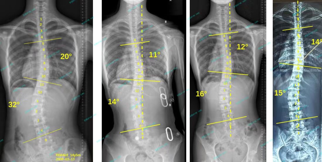 It has been more than two years since I came to Zhongde without realizing it. My mother and I trust Dr. Yang and all rehabilitation therapists very much. Recently, an x-ray without wearing brace showed that my chest bend dropped from 20 degrees to 14 degrees, and my waist bend dropped from 32 degrees to 15 degrees, I am very happy!