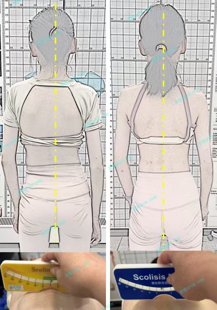 After persisting in this way for three months, x-ray showed that my waist bend dropped from 21 degrees to 11 degrees. We were all very happy! I don't have to wear uncomfortable braces all day long. As long as I persist in training every day, I will have good gains!
